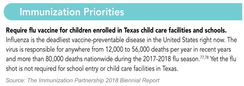 Oh, if skipping the flu shot were just that easy! We are just a few short weeks into the 86th Texas Legislative Session, and we have learned that the opposition has put in writing that one of their priorities is to require your child to receive a flu shot every year, whether you like it or not.