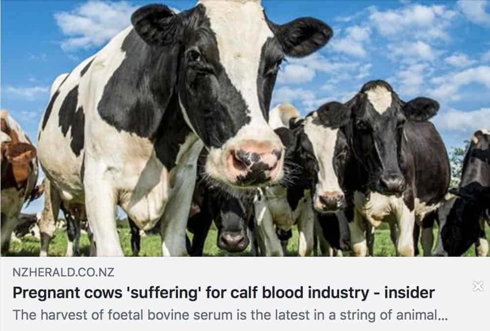 “Heavily pregnant cows are being slaughtered and the blood drained from their unborn calves’ hearts to be sold for export…The serum is used in pharmaceuticals and in laboratories as a medium to grow cells – including in the formation of vaccines and, ironically, lab-grown meat.”
