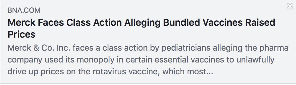 “Merck & Co. Inc. faces a class action by pediatricians alleging the pharma company used its monopoly…to unlawfully drive up prices on the rotavirus vaccine…