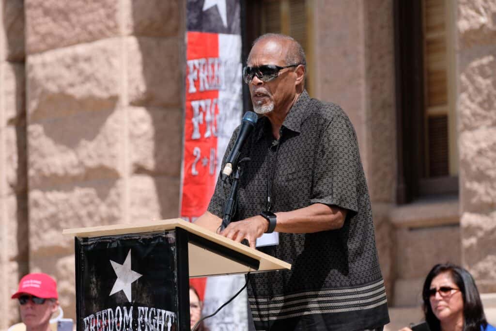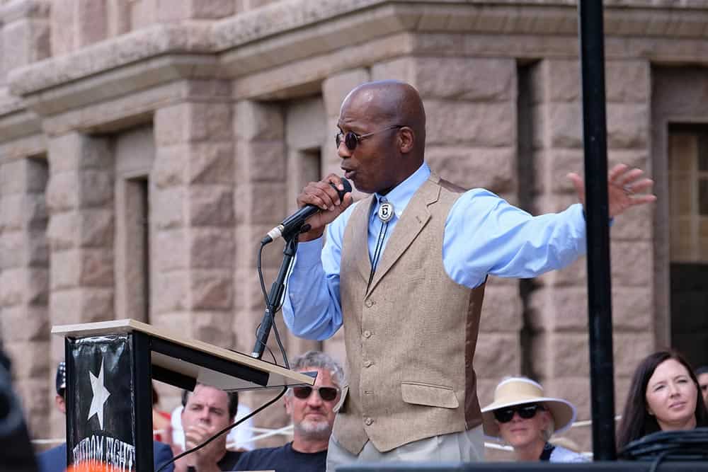 We had the privilege of hosting great speakers like Del Bigtree, Jaco Booyens, Bernadette Fiaschetti, Dr. Richard Fleming, Rick Green, Sara Gonzales, Dr. Amy Offutt, Sen. Bob Hall, Jackie Schlegel, Mikki Willis, Jennifer Bridges, Pastor Stephen Broden (pictured), Miguel Escobar, and Ernest Ramirez. These speakers gave powerful testimonies, informative medical law and ethics advice, and encouraging speeches regarding the future of medical freedom. (Photo by David Watts – LightbyWatts.com)