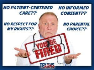I LOVE this!! I’ve been saying for years that these people are OUR employees! We pay THEM! I don’t let my gardener, housekeeper, lawyer, accountant, taxi driver, pastor, etc. bully or intimidate or in any other way FORCE me to do anything. Particularly something I deem unsafe or deleterious to the health of my family! Thank you!