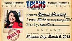 If your House District is not listed, it indicates that TFVC does not have endorsed candidate in that race.