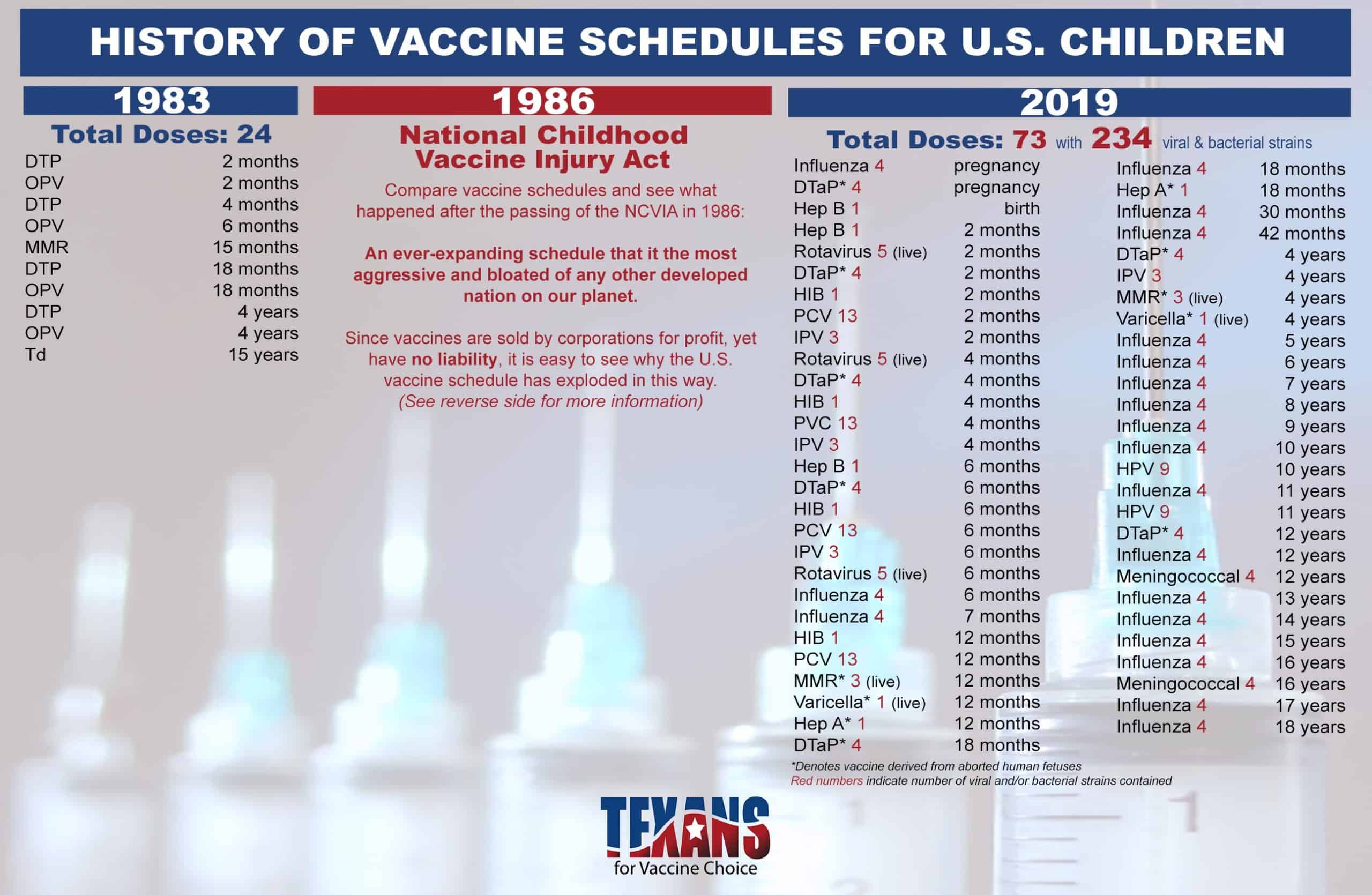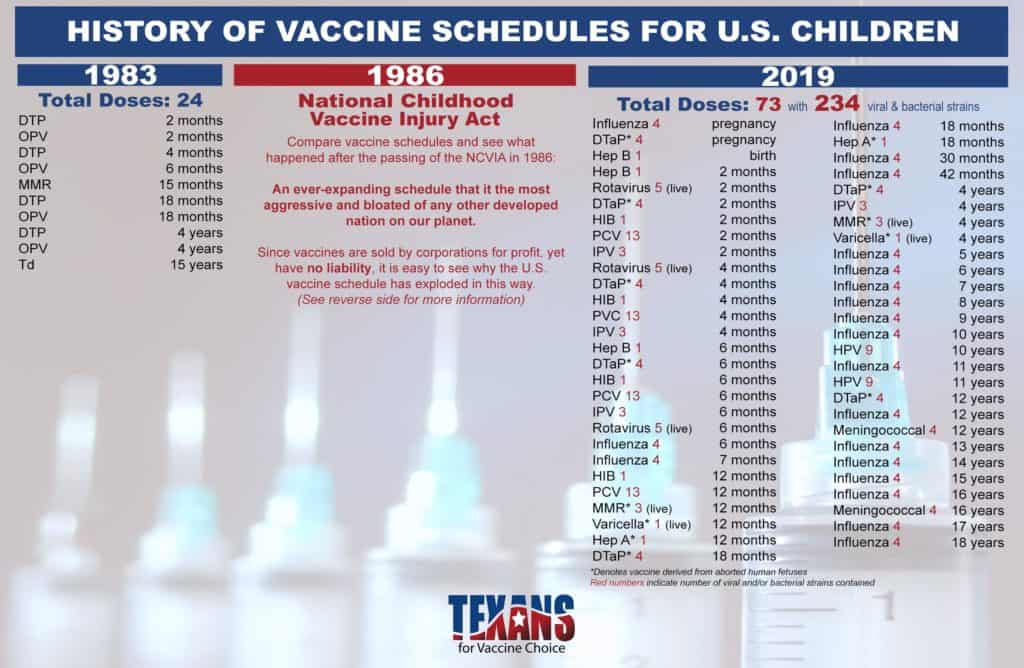 This freedom from financial liability, the guaranteed market created by the CDC’s vaccination recommendations, and the lack of safety testing required for vaccines (as opposed to what is required for every other pharmaceutical drug) made vaccines an extremely attractive and lucrative business model. Not surprisingly, within a few years, loads of new vaccines were soon developed and rushed to market, and the U.S. vaccine schedule tripled and continues to grow today.