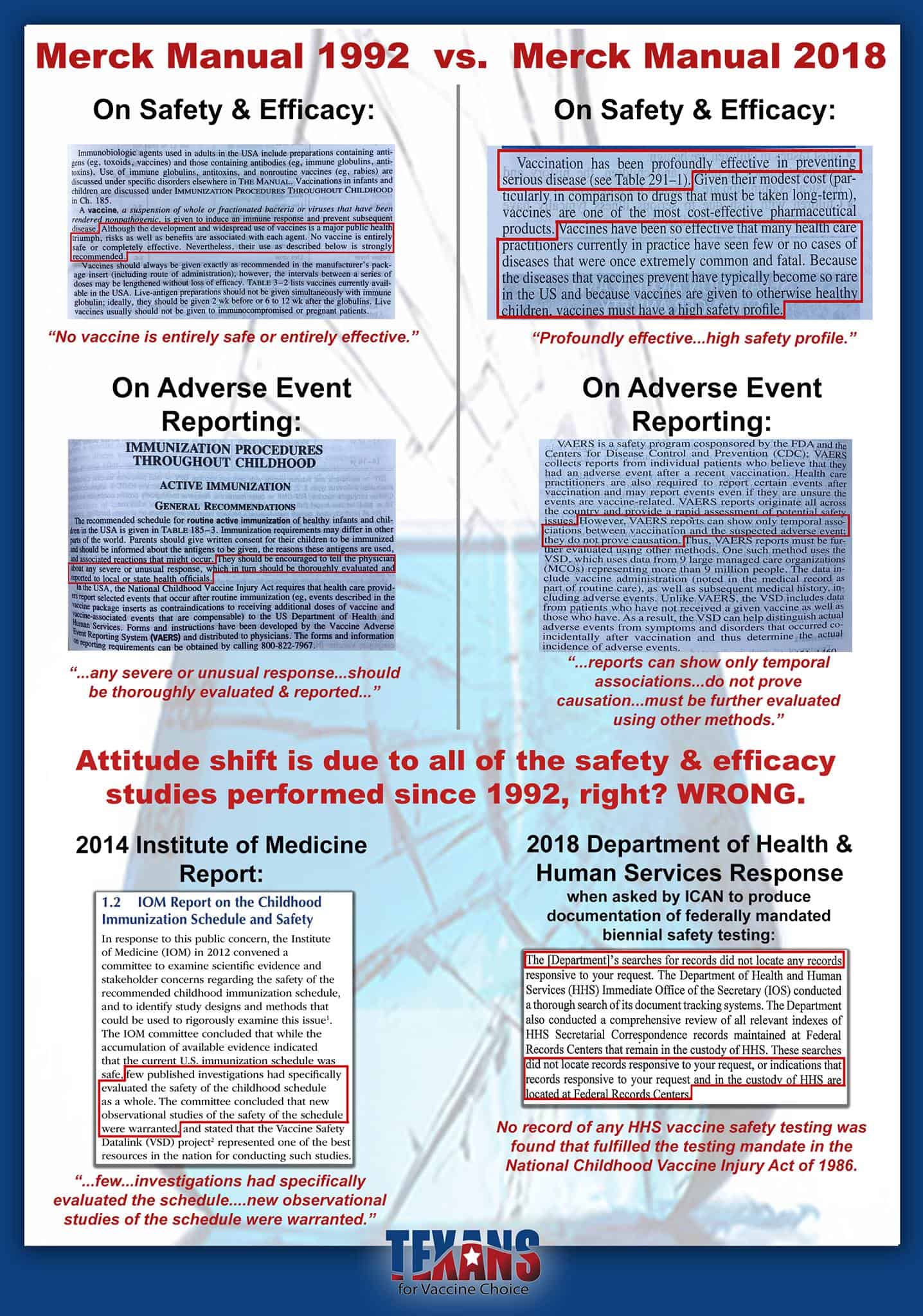 The latter version praises the remarkable safety and irrefutable efficacy of all vaccines (note the lack of any footnotes to support their sweeping claims) while also seemingly downplaying any “believed” adverse events following vaccination.