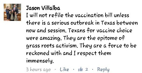 Villalba’s vaccine bill, HB2006, was the one that made quite a stink in Texas as far as we are concerned. The intention of the bill was to restrict religious exemptions for vaccinations by only allowing those who have signed