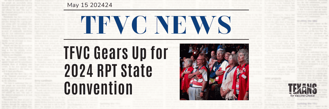The biggest convention of the year is next week! As the 2024 Republican Party of Texas (RPT) State Convention approaches, Texans for Vaccine Choice is gearing up to promote medical liberty in San Antonio. TFVC is calling on delegates to join the fight to strengthen the Vaccine Choice Plank in the Party Platform and garner […]